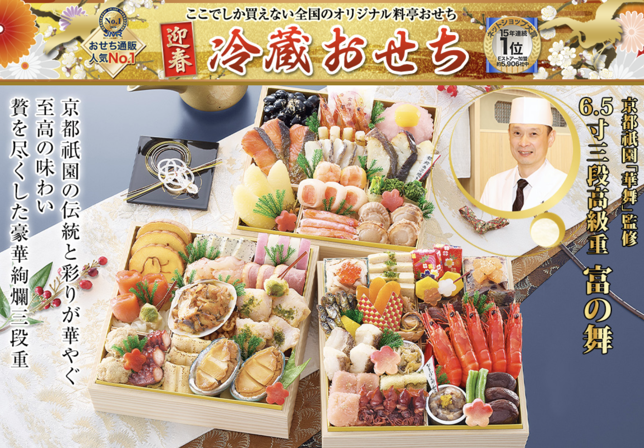 運営はスカイネット株式会社。厳しい品質管理と、素材へのこだわりを徹底し、「家族みんなで安心して食べられるおせち」を長年提供し続けています。